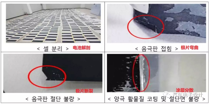 通過電池拆解分析確認(rèn)電池生產(chǎn)過程中存在一些的缺陷,確認(rèn)許多事故使用同一工廠同一批次生產(chǎn)的電池。結(jié)果發(fā)現(xiàn)這些同批次的電池里面極片上活性物質(zhì)的涂層不良等。