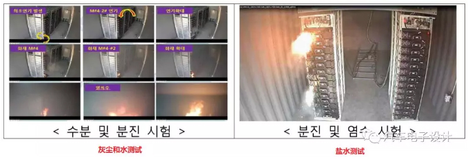 水分和粉塵測(cè)試:基于在空調(diào)周圍發(fā)現(xiàn)熔化痕跡的情況,通過模擬電池系統(tǒng)上的水分,灰塵和鹽水等環(huán)境來測(cè)試絕緣性能降低的可能性的結(jié)果, 性能惡化時(shí)發(fā)生火災(zāi)。